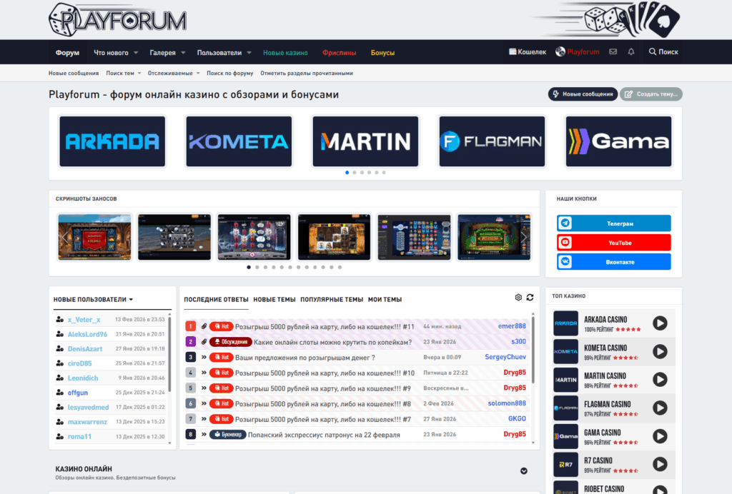 PlayForum – независимая площадка для любителей онлайн казино. Азартные игры в интернете не перестают набирать популярность, и в этом деле необходим качественный помощник. И никто не поможет вам лучше, чем обычные пользователи. На форумы вы сможете найти полезную информацию, которая поможет вам найти подходящее казино и узнать больше о всех функциях игровых клубов.
